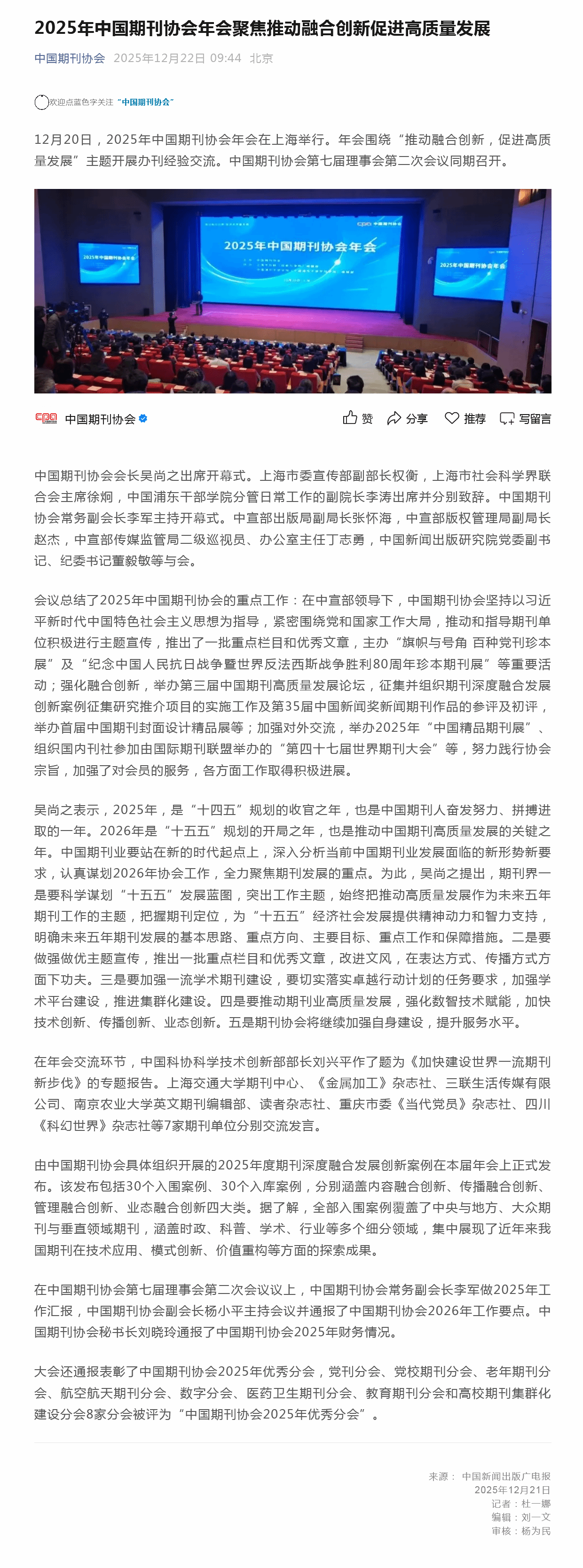 2025年中国期刊协会年会聚焦推动融合创新促进高质量发展